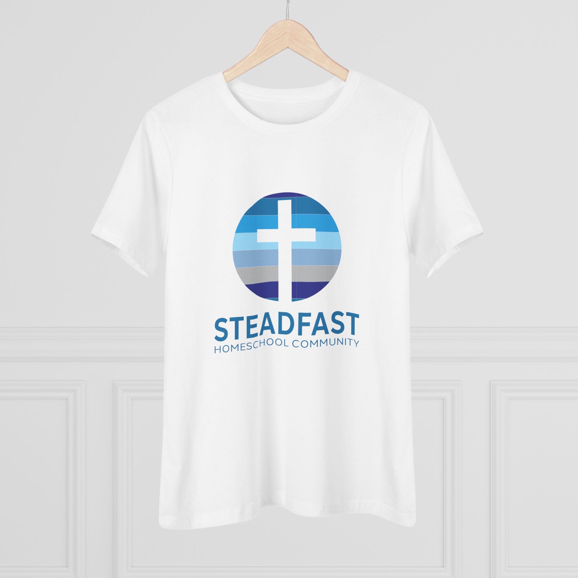 Women's Steadfast Unisex Jersey Tee with Isaiah 26:3 Verse - Blue Logo