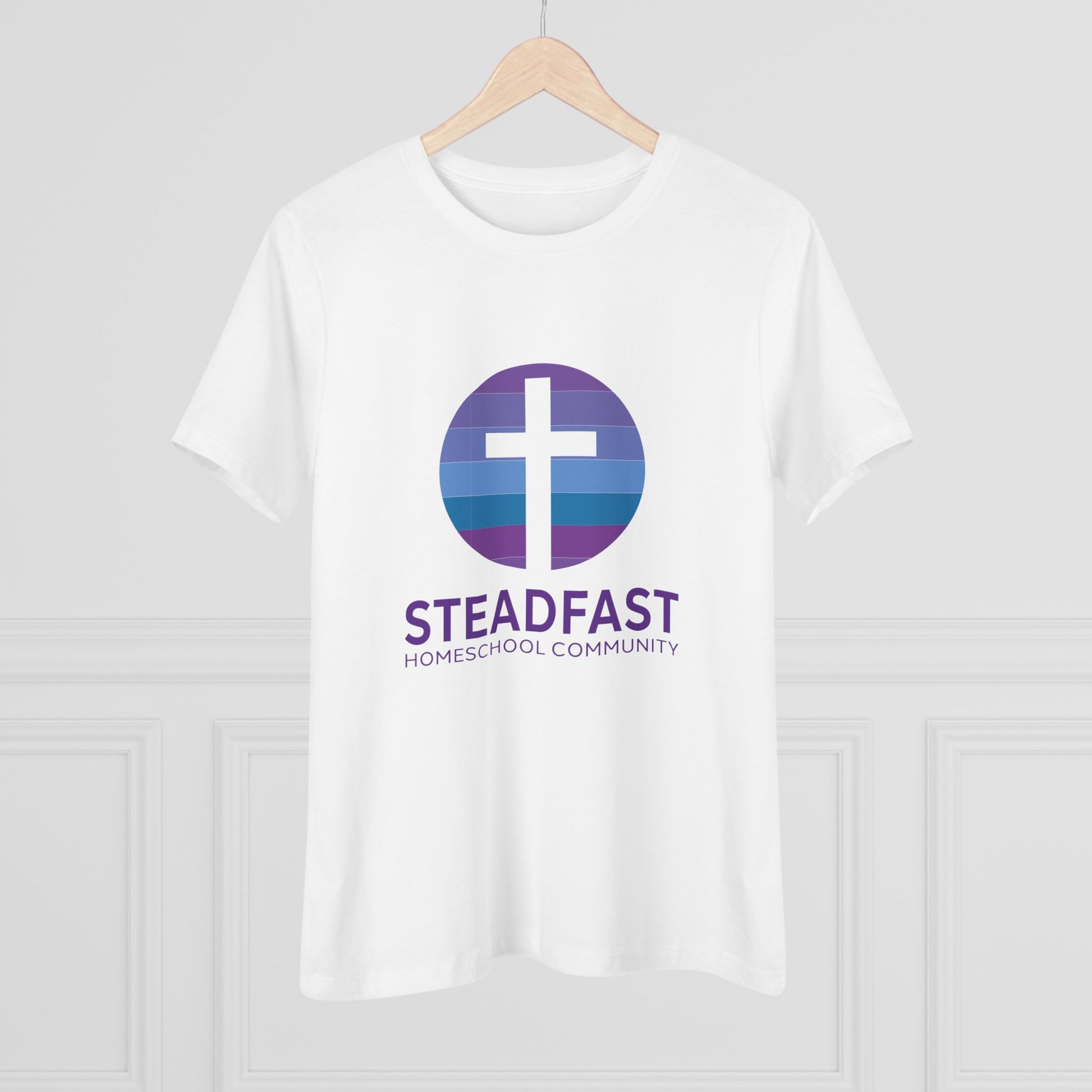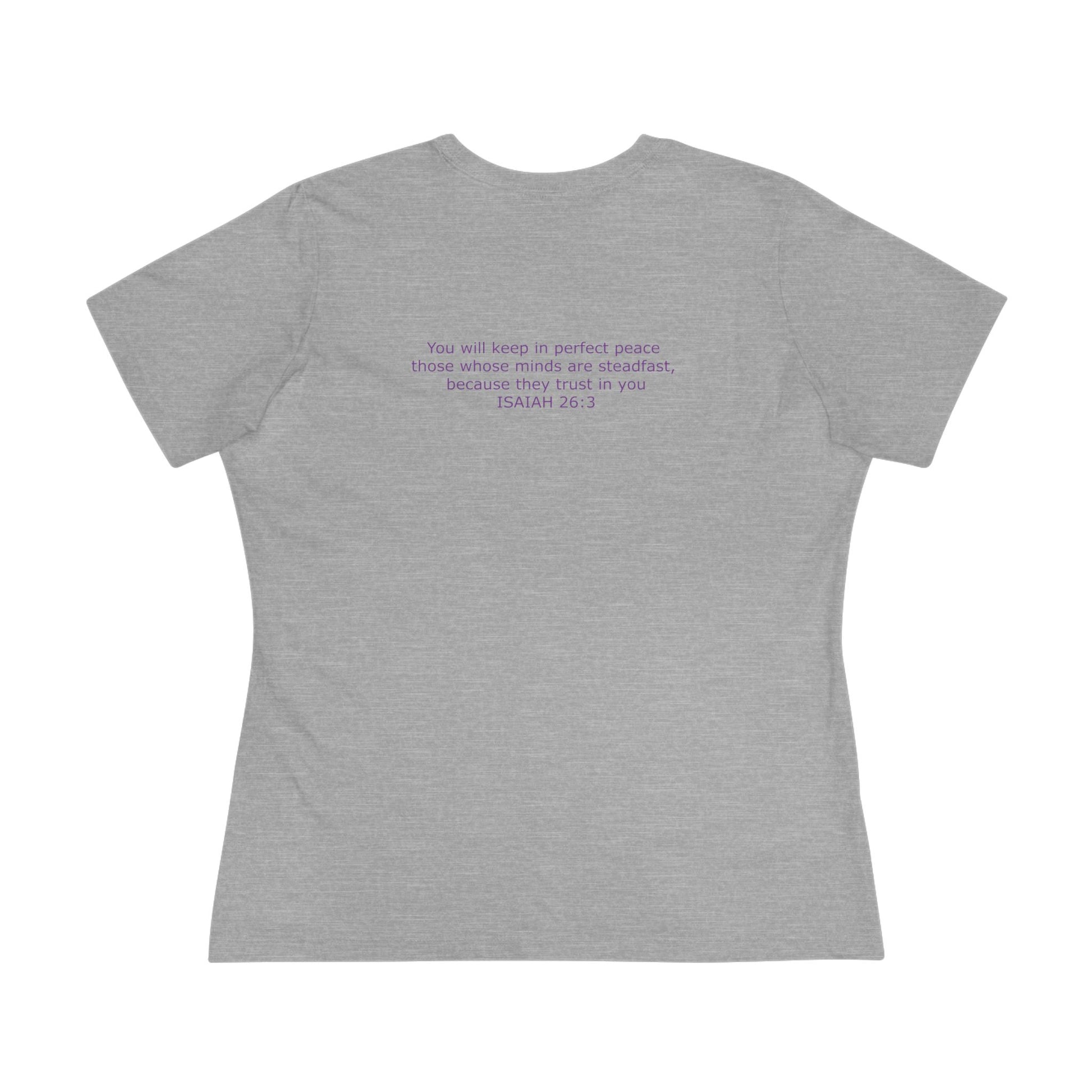 Women's Steadfast Unisex Jersey Tee with Isaiah 26:3 Verse - Purple Logo